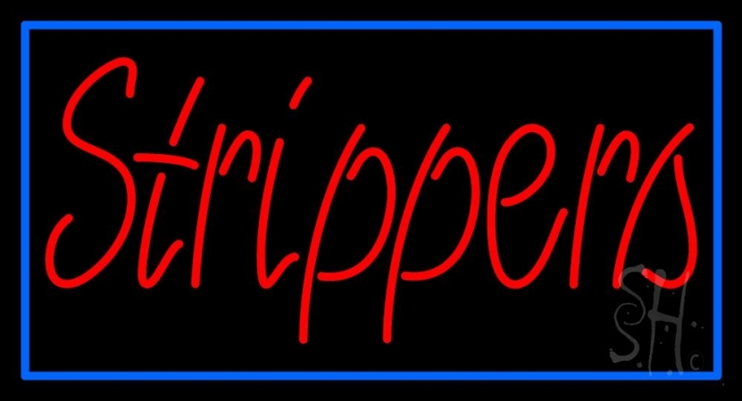 Red Strippers with Blue Border Neon Sign 20" Tall x 37" Wide x 3" Deep