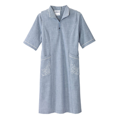 Silverts Senior Women's Adaptive Open Back Embroidered Linen Dress Breezy Blue - Silverts 314_SV2003_2XL EA - Betty Mills