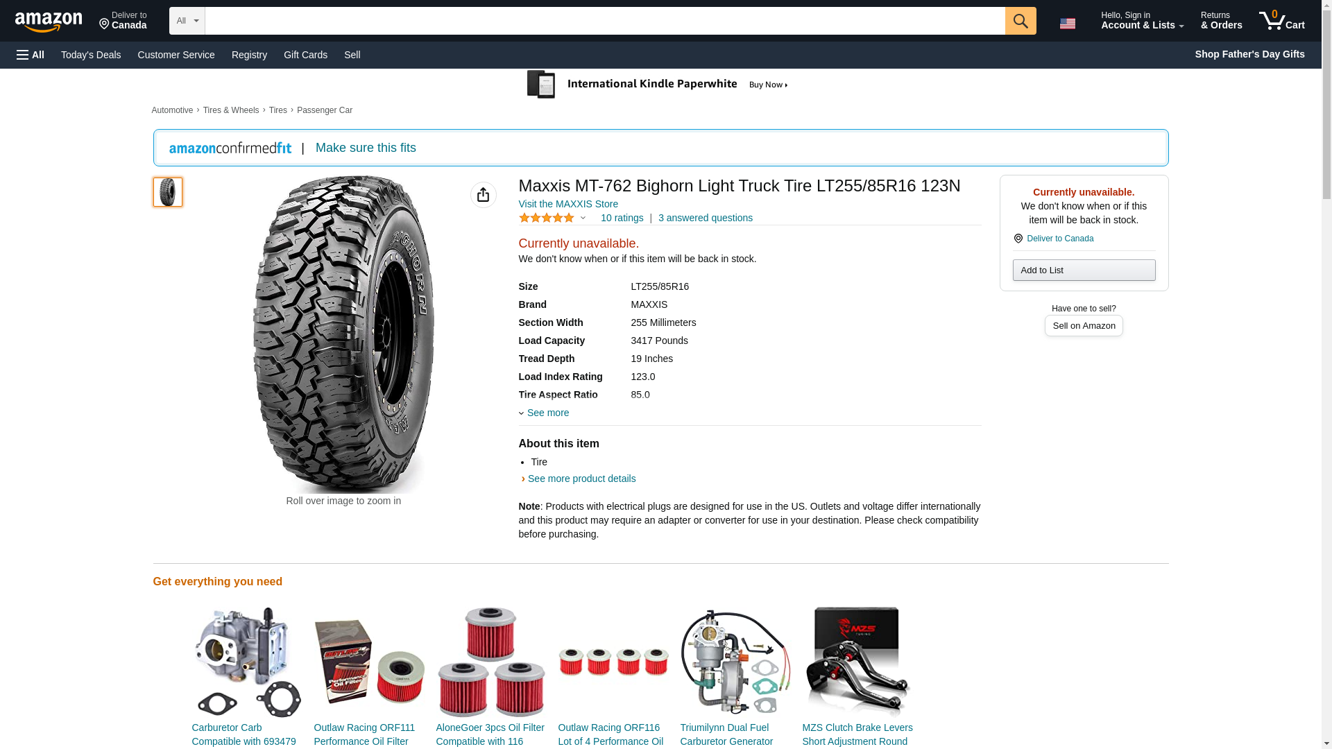 - 1 X New Maxxis Bighorn MT-762 LT255/85R16 119/116N D/8 All Terrain Mud Tires