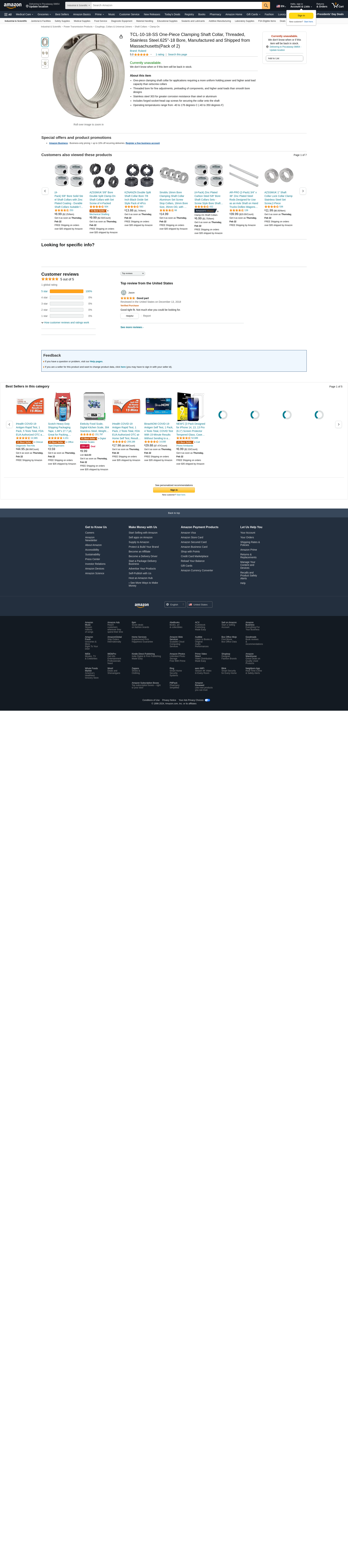 Ruland TCL-10-18-SS One-Piece Clamping Shaft Collar, Threaded, Stainless Steel.625"-18 Bore, Manufactured and Shipped from Massachusetts(Pack of 2)