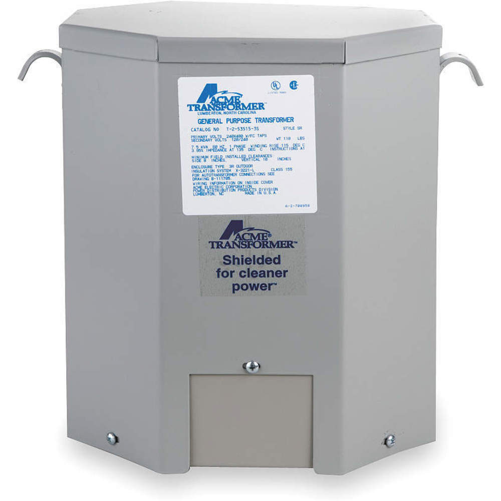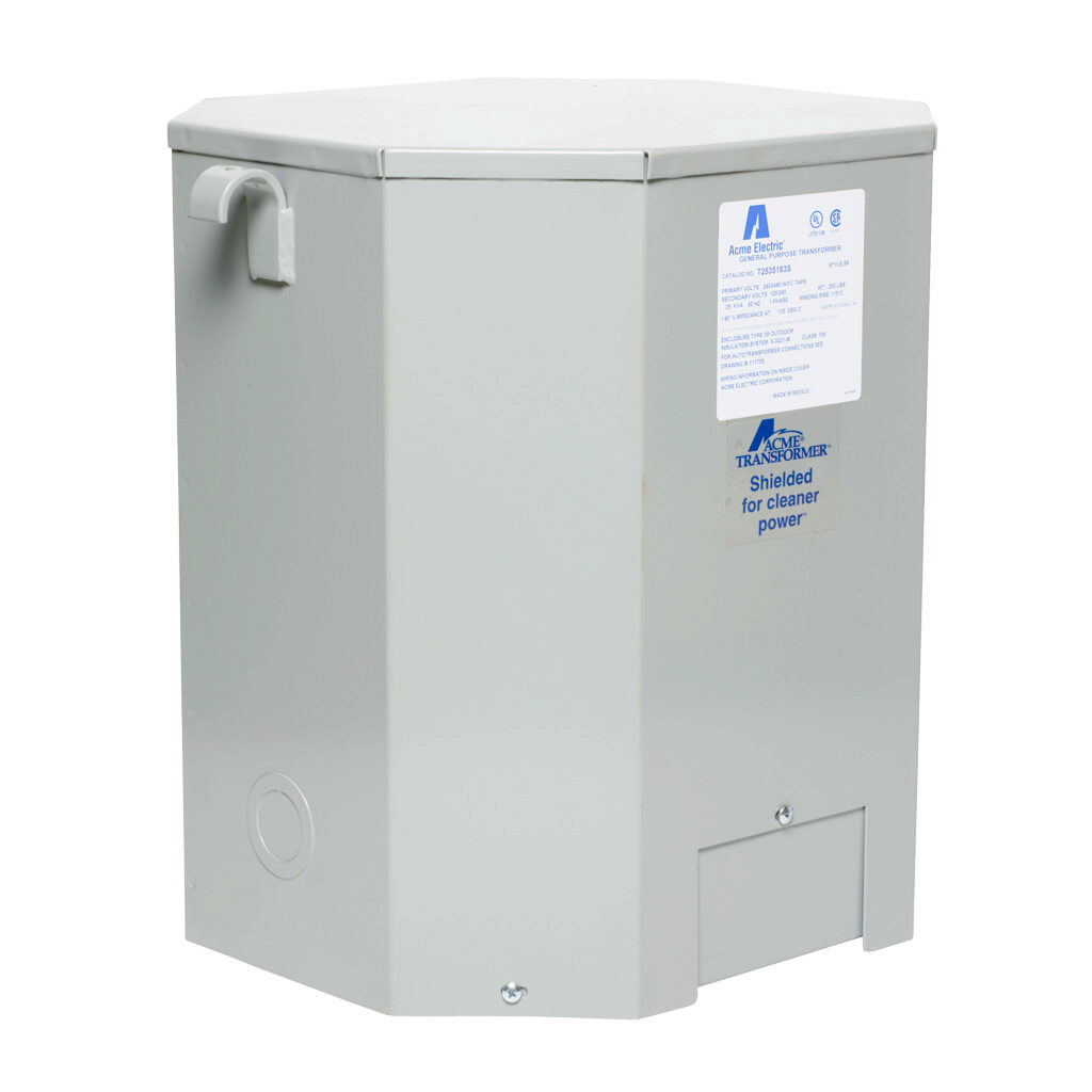 Acme Electric T2535183S Dry-Type Distribution Transformer, 1 Phase, 25.00 kVA, 60 Hz, 240 x 480 Primary Volts, 4 Windings, Wall Mount, Steel, Gray