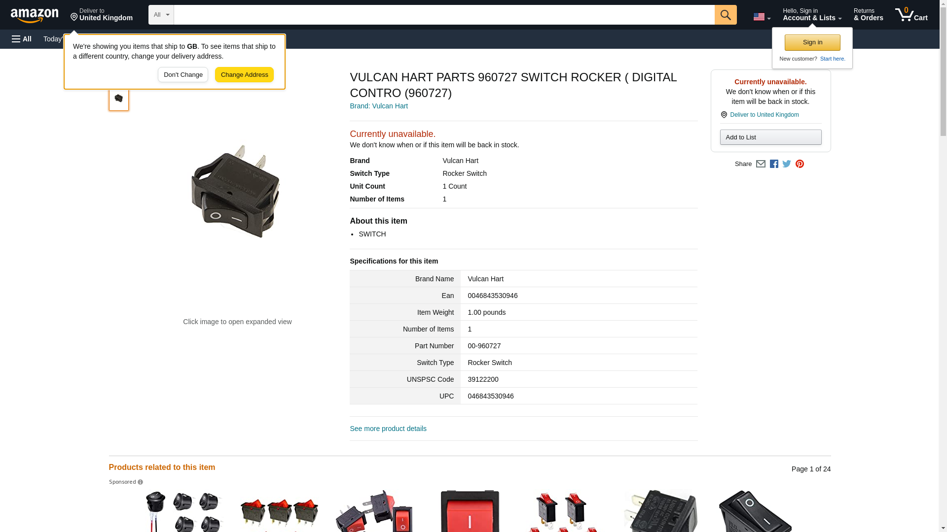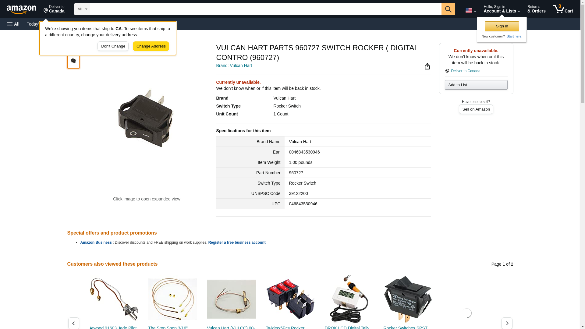 Vulcan-Hart 00-960727 SWITCH ROCKER
