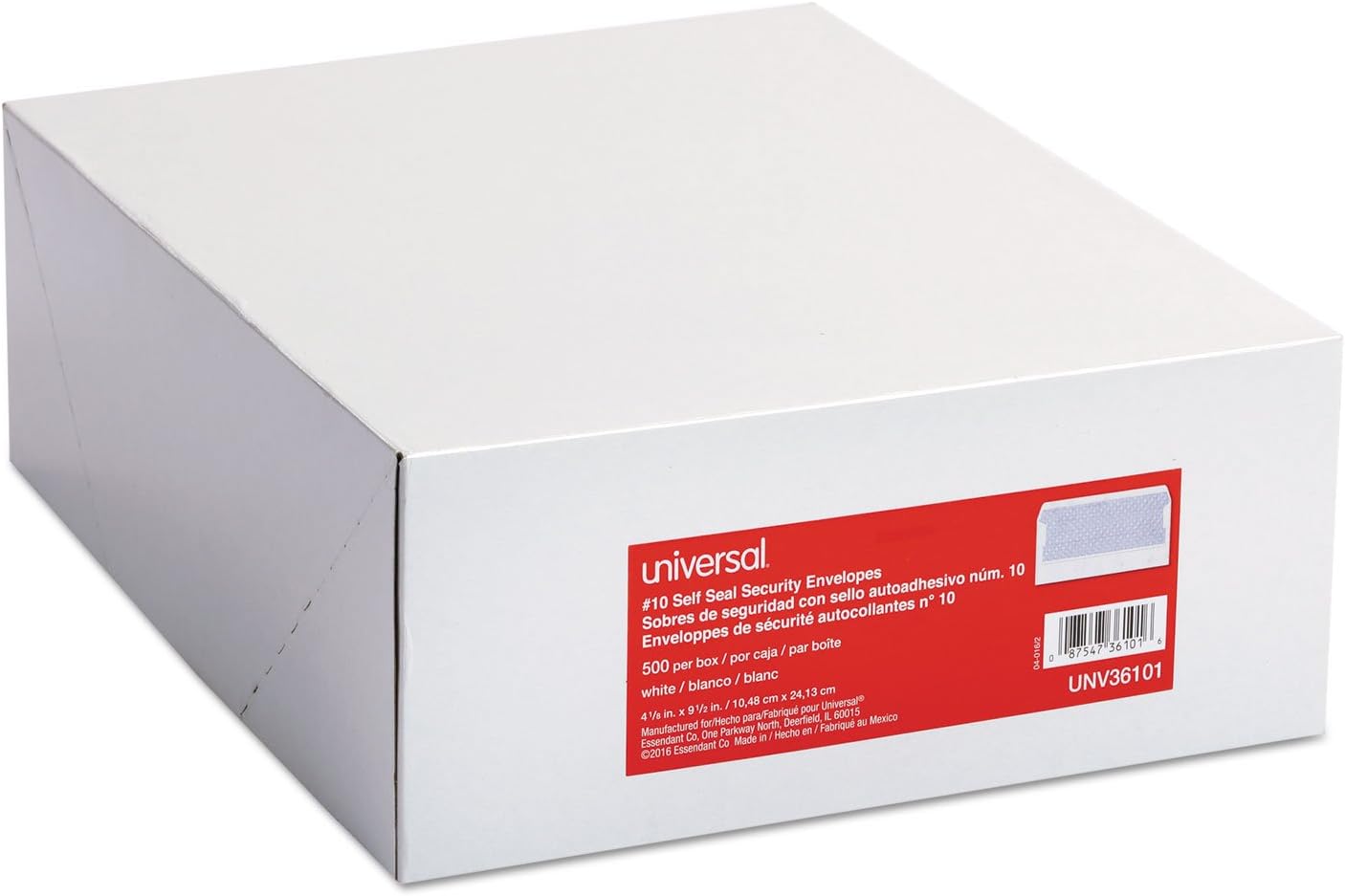 Universal 36101 Self-Seal Business Envelope, Security Tint, 10, 4 1/8 x 9 1/2, White, 500/Box