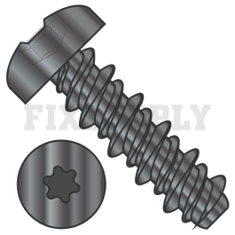 Self-Tapping Screw - High-Low - 6-Lobe Drive Pan Head - #8 Head - Black Zinc Steel - 10-16 Thread - 3/4" Long - Blunt Point