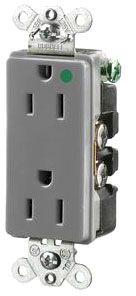 Hubbell HBL2172GY Decorator-Style Hospital Grade Receptacle, 15 amp, 125V, 5-15R, Gray