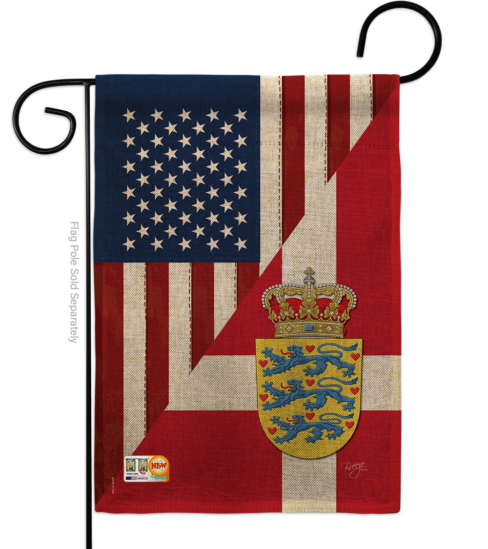 Breeze Decor BD-FS-G-108387-IP-DB-D-US16-BD 13 x 18.5 in. US Denmark Friendship Burlap Flags of the World Impressions Decorative Vertical Double Sided Garden Flag