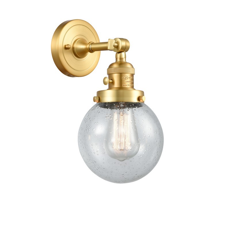 INNOVATIONS LIGHTING 203SW-SG-G204-6 FRANKLIN RESTORATION BEACON 6 INCH ONE LIGHT UP OR DOWN SEEDY GLASS WALL SCONCE,...