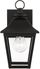 Designed by Sean Lavin, the Galena one-light outdoor wall fixture in textured black enhances the beauty of your property, makes your home safer and more secure, and increases the number of pleasurable hours you spend outdoors. Galena is a Europe-inspired classic lantern. Simple and refined, Galena features a gently curved hook detail atop a vented, square-off roofline and candle tubes floating within the tapered Clear Seeded glass shades. Galena is a warm, welcoming silhouette offered in a Sable or Textured Black finish. From the brand formerly known as Generation Lighting Designer Collection / Classic, minimalist fixture is perfect for exterior wall applications such as garages, porches, patios or gazebos / Safety listed for wet locations and easy installation with all wall mounting hardware included / Uses (1) 75-watt Torpedo Candelabra light bulb sold separately; LED compatible / Available Finishes: Sable and Textured Black / Wet Rated.