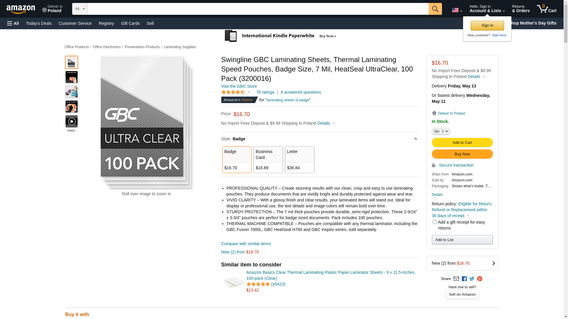 Swingline GBC Laminating Sheets, Thermal Laminating Speed Pouches, Badge Size, 7 Mil, HeatSeal UltraClear, 100 Pack (3200016)
