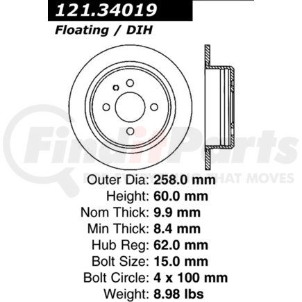 Centric Parts 121.34019 C-Tek Standard Brake Rotor