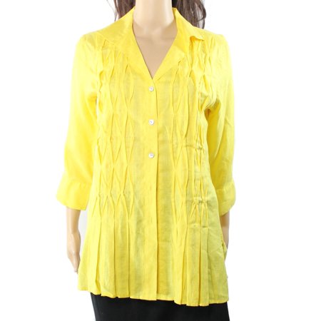 <li><b>Color:</b> Yellows</li> <li><b>Size Type:</b> Regular</li> <li><b>Size (Women's):</b> 2</li> <li><b>Sleeve Style:</b> 3/4 Sleeve</li> <li><b>Style:</b> Button Down Shirt</li> <li><b>Occasion:</b> Casual</li> <li><b>Material:</b> Linen</li>