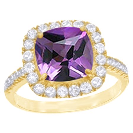 <ul> <li>Metal Type : 14k Yellow Gold Over Sterling Silver GUARANTEED, Authenticated with a 925 Stamp</li> <li>Gem Type :- Simulated Amethyst (Lab Created); Simulated Sapphire (Lab Created)</li> <li>Stone Shape :- Cushion Shape & Round Shape</li> <li>Stone Setting type :- prongs</li> <li>Stone Clarity :- VVS1-VVS2 & VVS1-VVS2, Stone Color :- Violet; White</li> </ul>