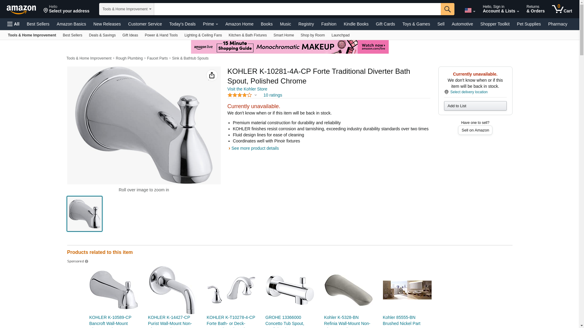 KOHLER K-10281-4A-CP Forte Traditional Diverter Bath Spout, Polished Chrome