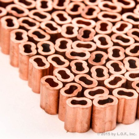 <ul> <li>Set of 250 Copper Double Barrel Ferrules</li> <li>For 1/8" thick Wire/Rope/Cable</li> <li>Wire/Rope/Cable Ferrules For Making Cable Loop Ends</li> <li>Constructed of Heavy Duty Copper; made Tough and Durable</li> <li>One Year Guarantee against workmanship and defects</li> </ul>