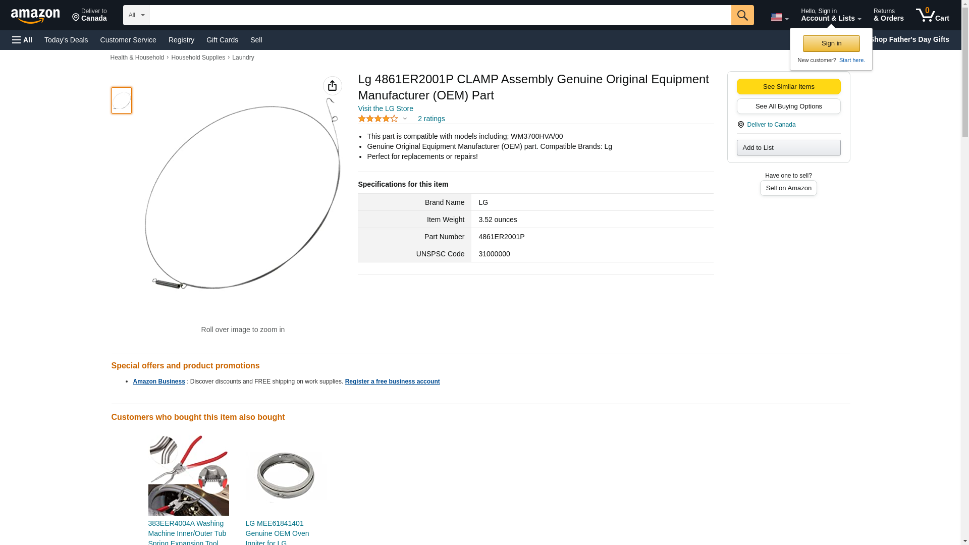 Genuine Original Equipment Manufacturer (OEM) parts! Lg 4861ER2001P CLAMP ASSEMBLY