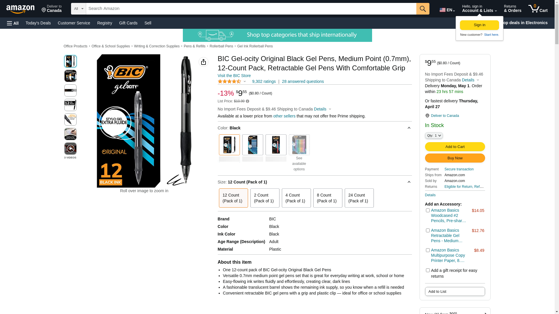 - One 12-count pack of BIC Gel-ocity Original Black Gel Pens