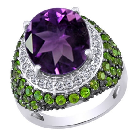 <ul> <li>Metal Type : 14k White Gold Over Sterling Silver GUARANTEED, Authenticated with a 925 Stamp</li> <li>Gem Type :- Simulated Amethyst (Lab Created); Simulated Topaz (Lab Created)</li> <li>Stone Shape :- Oval Shape & Round Shape</li> <li>Stone Setting type :- prongs</li> <li>Stone Clarity :- VVS1-VVS2 & VVS1-VVS2, Stone Color :- Violet; White</li> </ul>