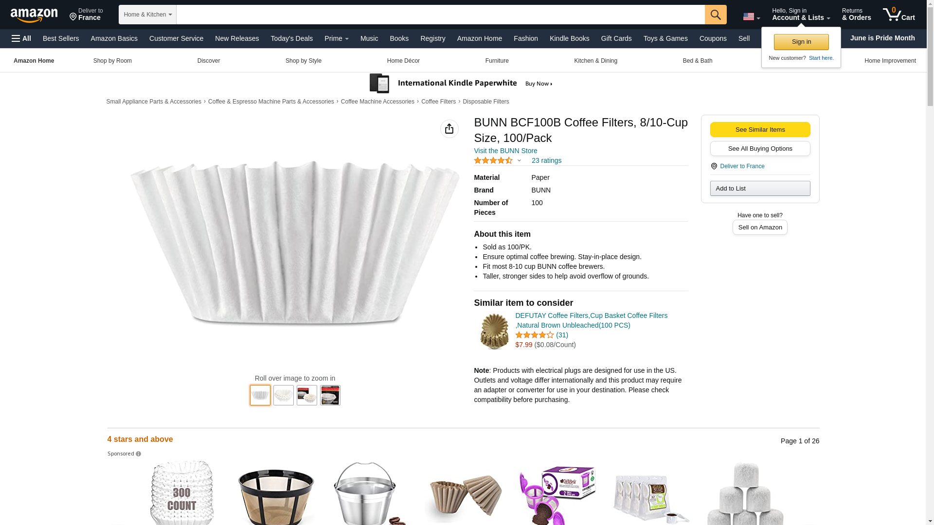 BUNN BCF100B Coffee Filters, 8/10-Cup Size, 100/Pack