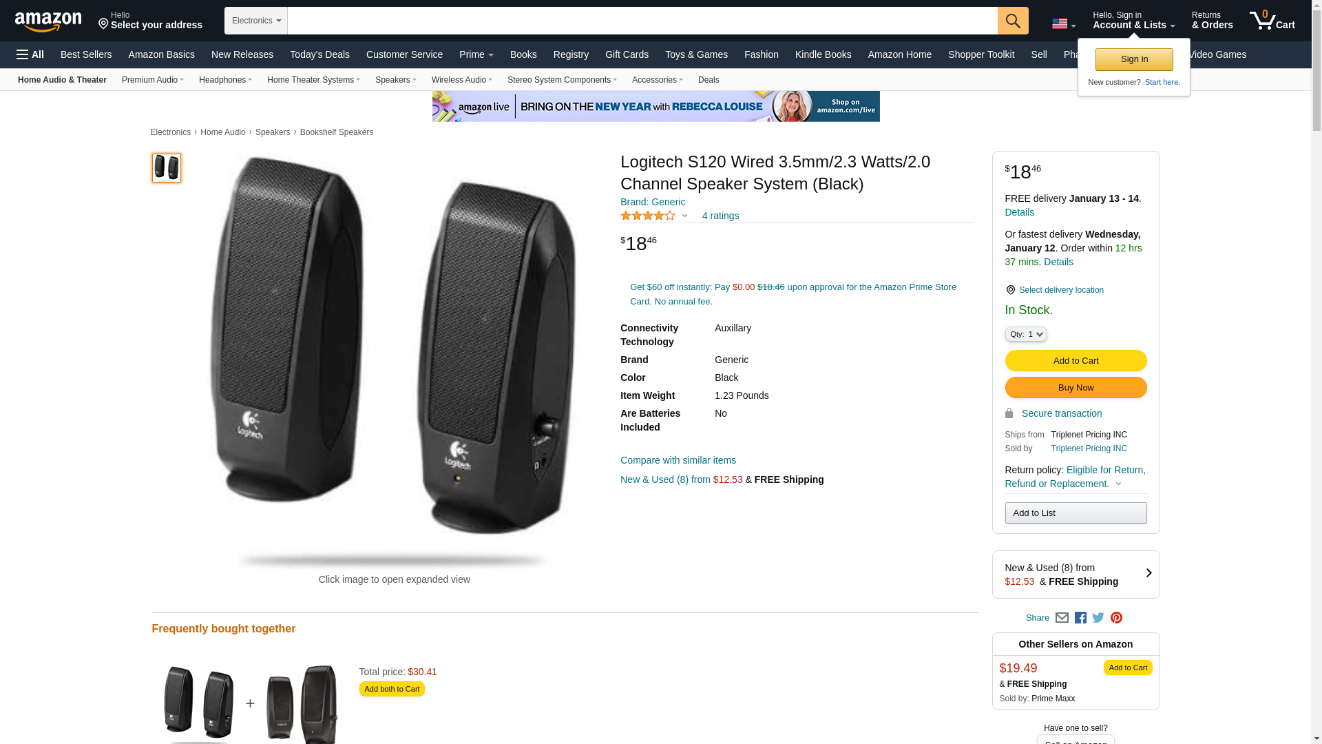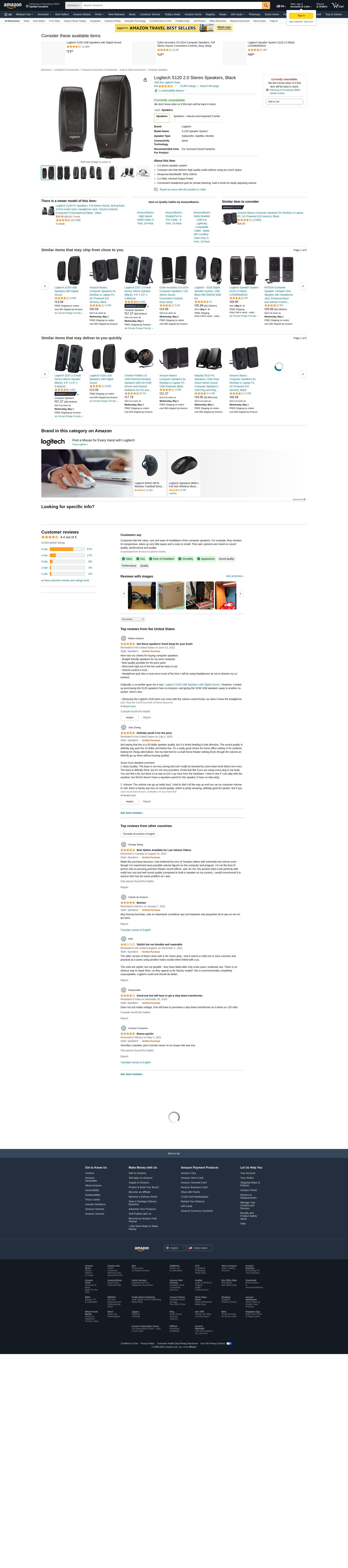 Logitech S120 Wired 3.5mm/2.3 Watts/2.0 Channel Speaker System (Black)
