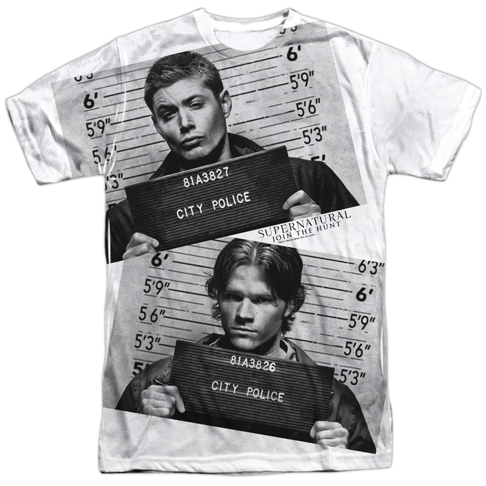 Trevco WBT699-ATPP-2 Supernatural & Mug Shots Adult Regular Fit Polyster Crew Neck Short Sleeve T-Shirt, White - Med