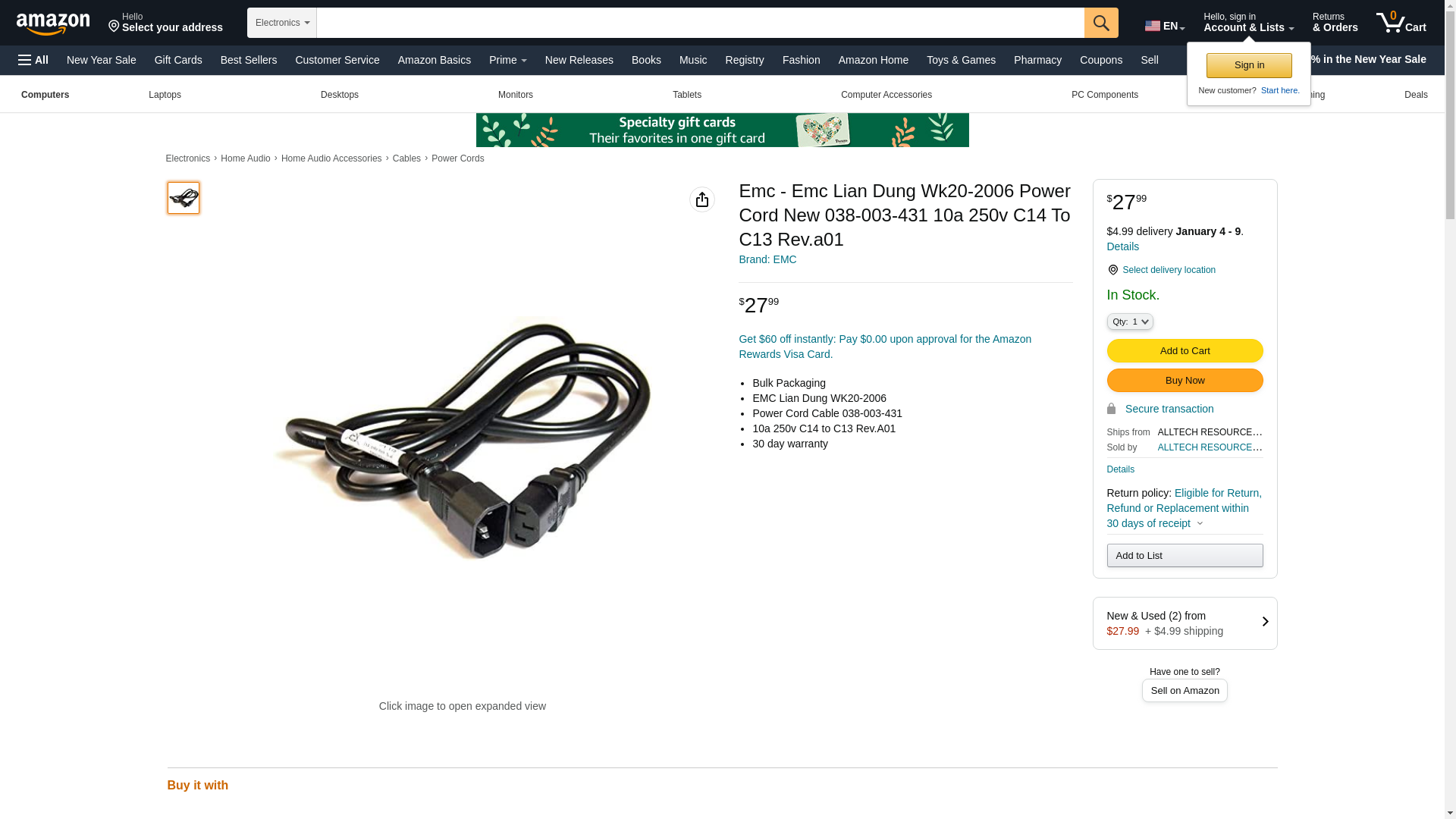 Emc - Emc Lian Dung Wk20-2006 Power Cord New 038-003-431 10a 250v C14 To C13 Rev.a01