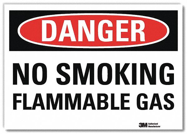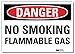 Danger Sign, Vertical Rectangle, Number of Printed Sides 1, English, Sign Format Traditional OSHA, Sign Legend No Smoking Flammable Gas, Sign Legend Background Color White, Sign Legend Style Text