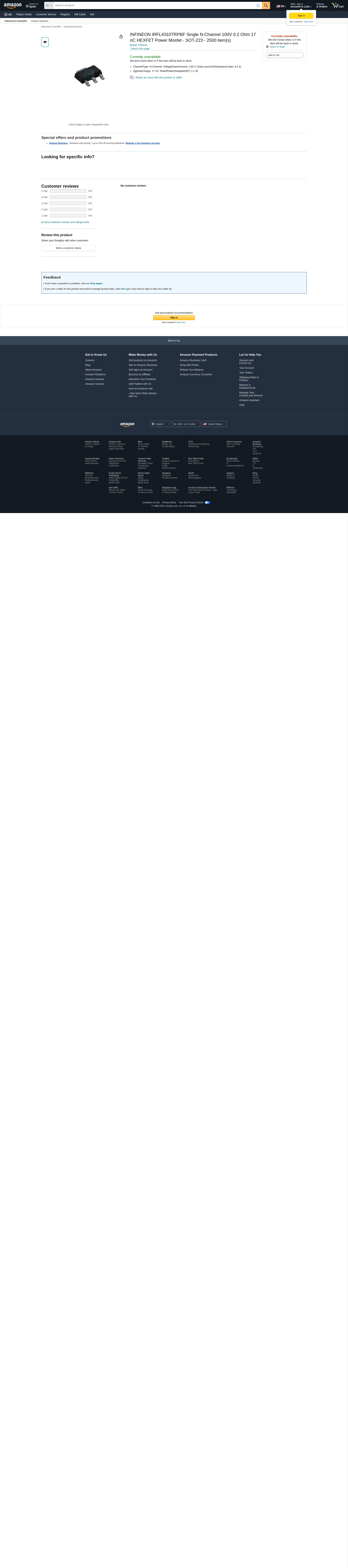 IRFL4310TRPBF, Trans MOSFET N-CH Si 100V 2.2A 4-Pin(3+Tab) SOT-223 T/R (50 Items)