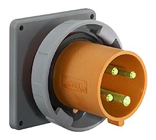 Hubbell Wiring Device-KELLEMS 100 Amp, 1-Phase Zytel 101 Nylon Watertight Pin and Sleeve Inlet, Orange