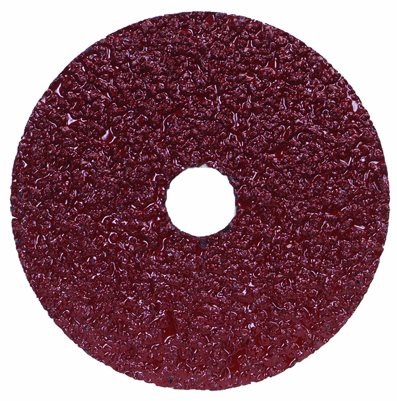 The most heavy-duty of coated abrasive discs: full resin bond on vulcanized (cotton fibers treated under intense pressure and heat) fiber backing. Designed for applications ranging from heavy stock removal to surface blending. Used with back up pads on portable angle grinders.