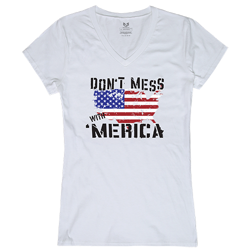 Rapid Dominance G03-U10-WHT-04 Dont Mess with America Graphic V-Neck T-Shirts, White - Extra Large