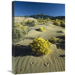 Global Gallery Coyote Tracks and Flowering shrubs, Great Sand Dunes, Colorado-Canvas Art-18"x24"