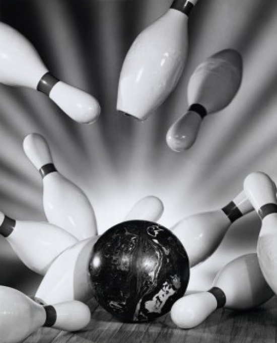 Superstock SAL2553660 Close-Up of A Bowling Ball Hitting Bowling Pins Poster Print, 18 x 24