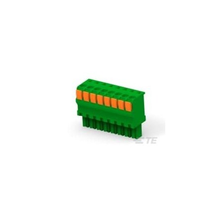 EU RoHS: Compliant ECCN (US): EAR99 Part Status: Active Type: Terminal Block Gender: F Number of Contacts: 8 Terminal Pitch (mm): 3.5 Number of Rows: 1 Number of Circuits: 8 Body Orientation: Straight Maximum Current Rating (A): 11/Contact Maximum Voltage Rating: 300VAC Insulation Resistance (MOhm): 1000 Minimum Operating Temperature (°C): -40 Maximum Operating Temperature (°C): 110 Product Length (mm): 30.48 Product Depth (mm): 20.75 Product Height (mm): 11.65 Housing Color: Green Mounting: Cable Mount