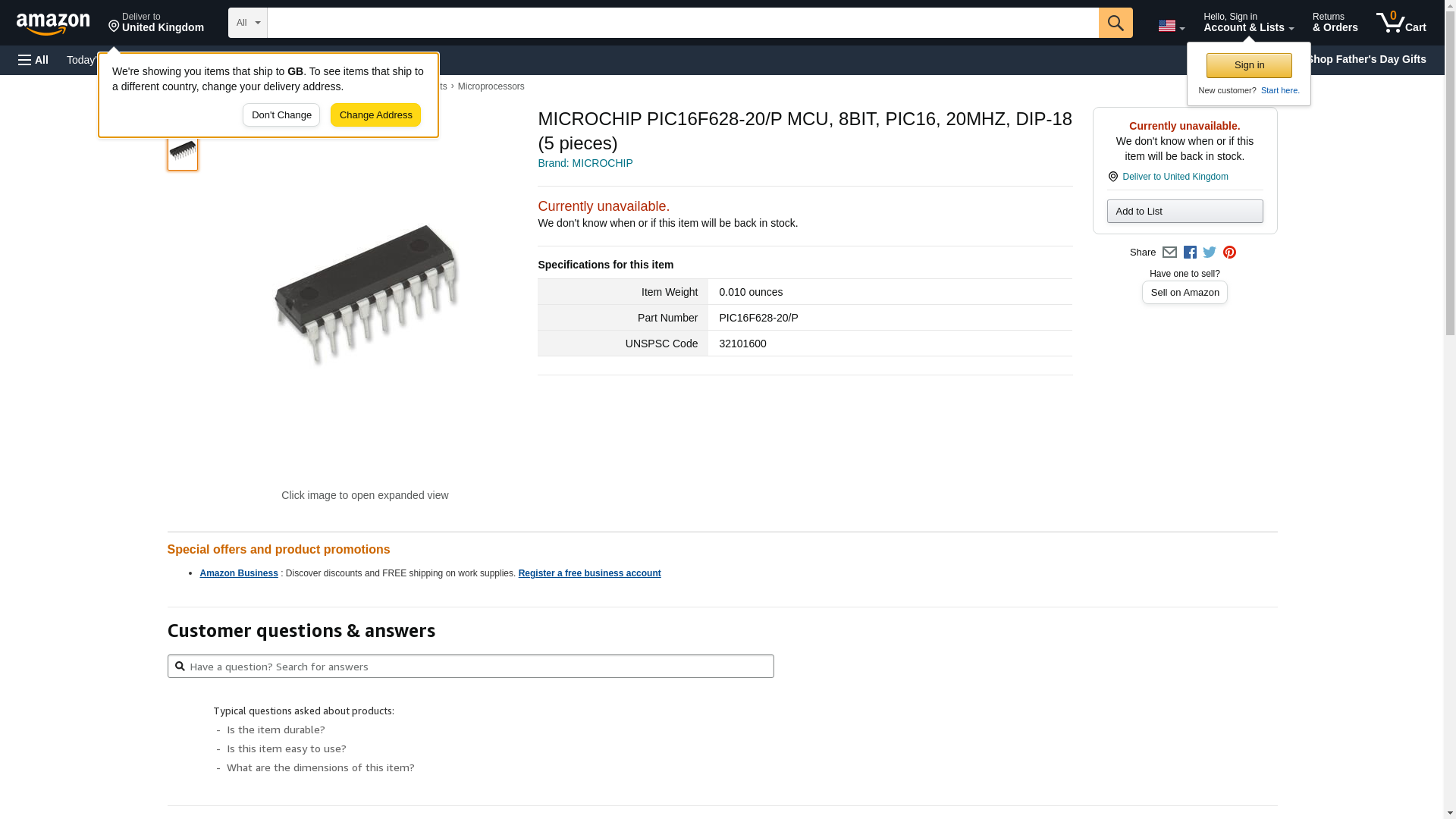 | 16F628-20/P-MICRO | 1 | 3 | 1 | 1 @ $3.85, 50 @ $3.27, 100 @ $2.88, 500 @ $2.69, 1000 @ $2.50 | |