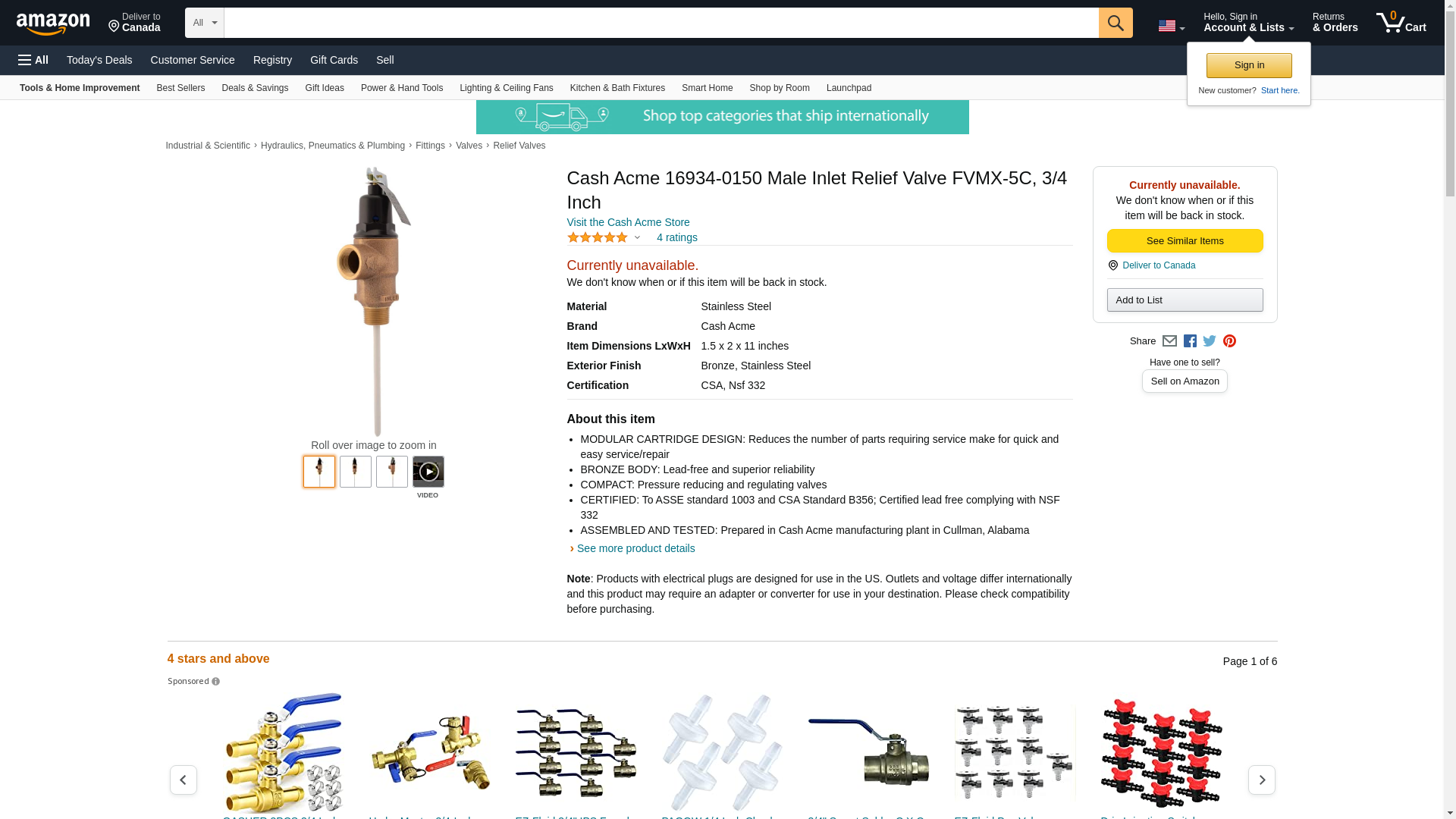 Cash Acme 16934-0150, FVMX-5C 3/4" Male Inlet Relief Valve (Pack of 6 pcs)