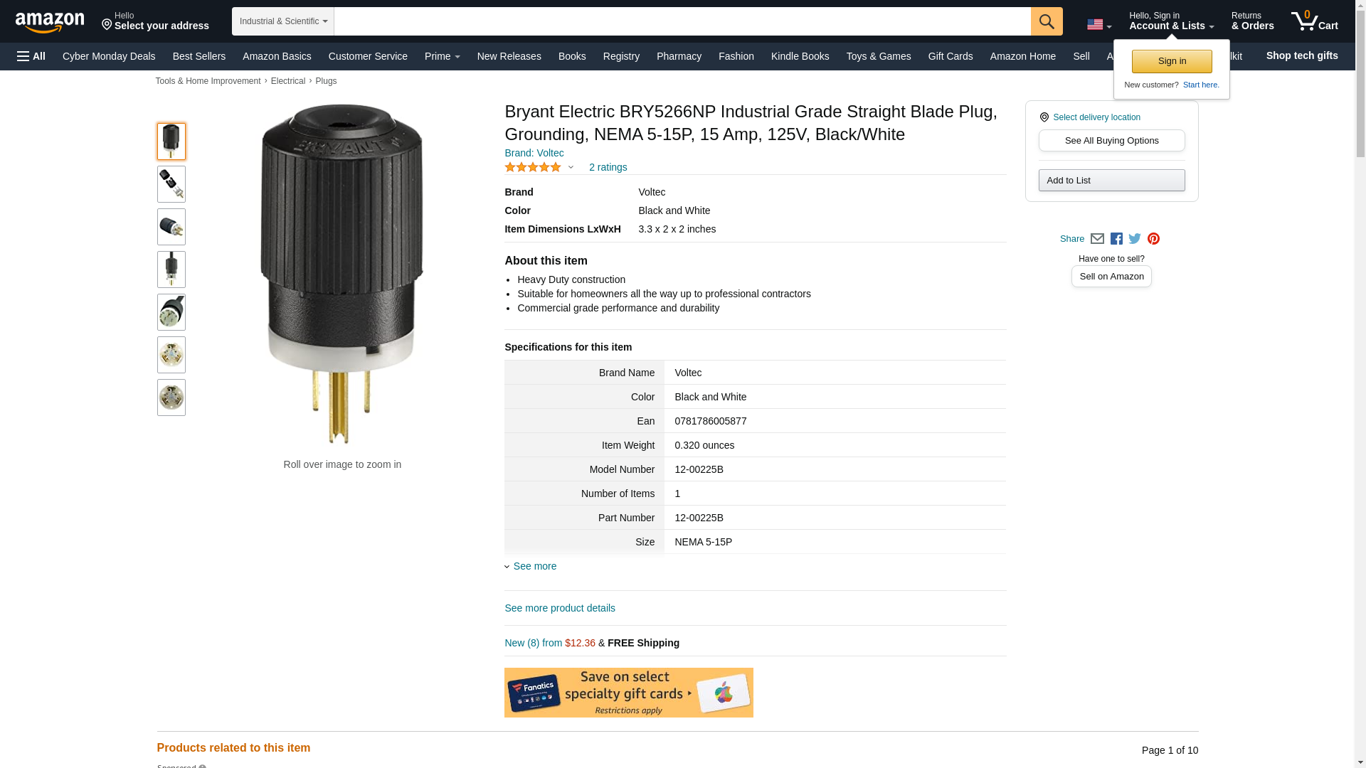 PN: BRY5266NP <br /><br />Amp: 15Color: BlackVolt: 125<br />Nema 5-152 Pole 3 Wire GroundingUpc: 781786005877 <br /> <br />