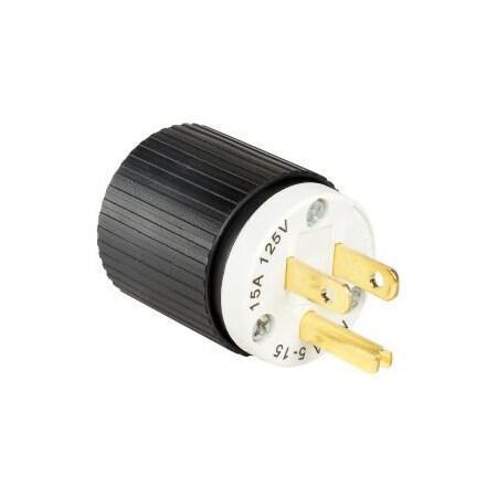 Bryant Electric BRY5266NP Industrial Grade Straight Blade Plug, Grounding, NEMA 5-15P, 15 Amp, 125V, Black/White