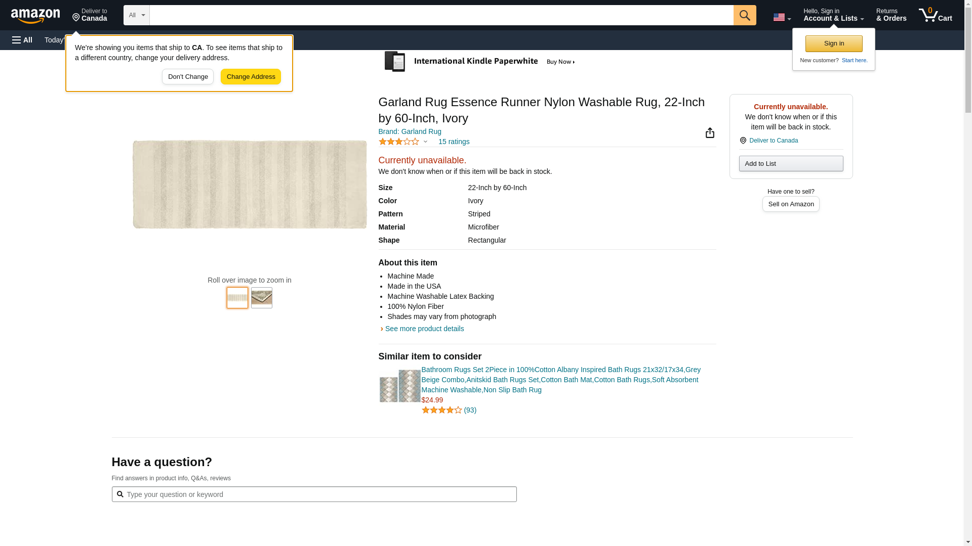 Garland Rug Essence Runner Nylon Washable Rug, 22-Inch by 60-Inch, Ivory