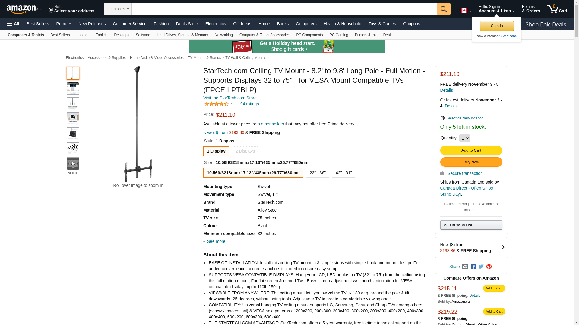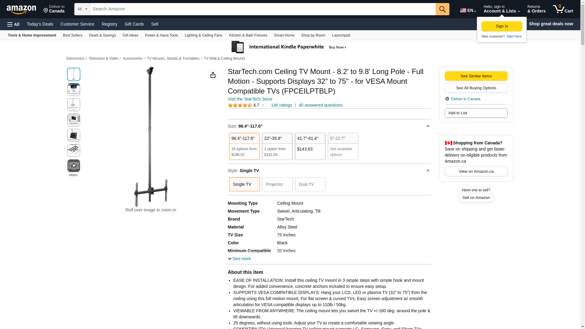 | Feature | Securely mount your flat-screen TV to a ceiling or overhead structure and customize your viewing angle |