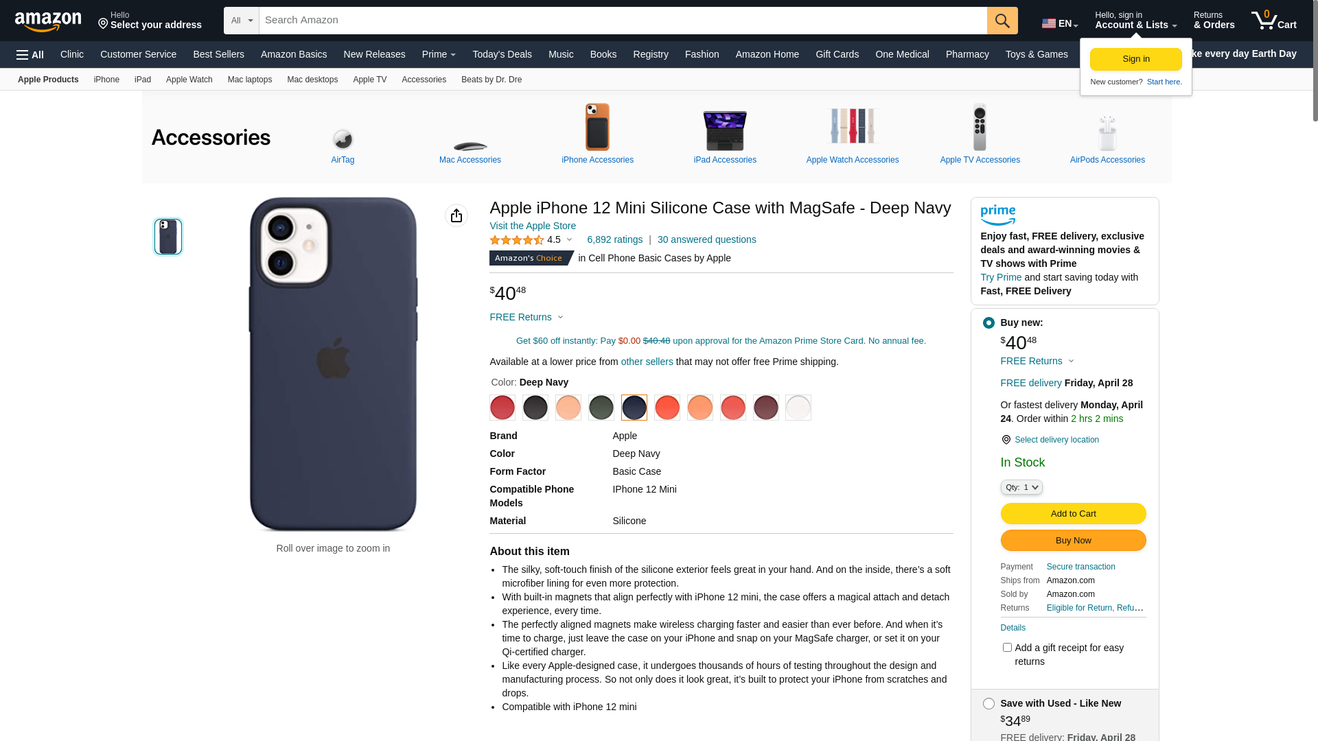Apple Silicone Case with MagSafe (for iPhone 12 mini) - Deep Navy