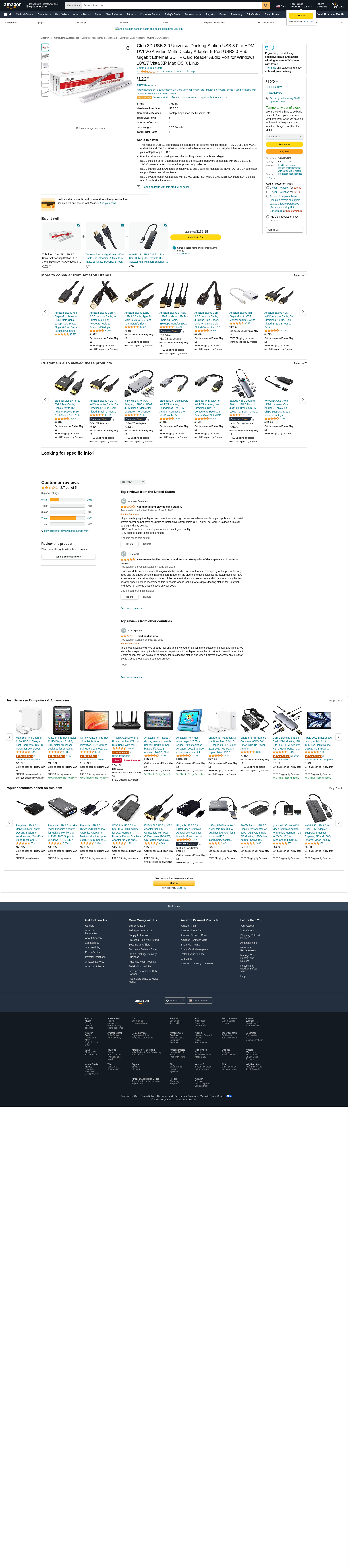 Club 3D USB 3.0 Universal Docking Station USB 3.0 to HDMI DVI VGA Video Multi-Display Adapter 5-Port USB3.0 Hub Gigabit Ethernet SD TF Card Reader Audio Port for Windows 10/8/7 Vista XP Mac OS X Linux