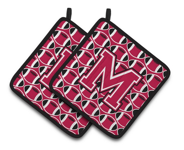 Carolines Treasures CJ1079-MPTHD Letter M Football Crimson & White Pair of Pot Holders, 7.5 x 3 x 7.5 in.