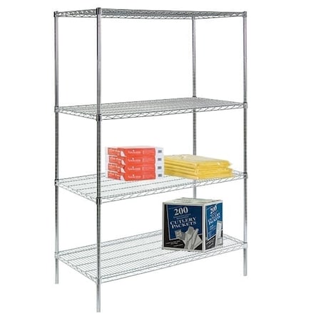 Wire shelving unit by Lakeside stands at 63'' in height and has four shelves that measure 48'' wide by 24'' deep. Used as a multipurpose storage solution, the chrome plated shelving unit is easy to clean and ideal for bulk storage areas on patient units and support departments. Each shelf is height adjustable and can support up to 800 lbs.Shelving unit is constructed with high quality chrome plated wire shelves and corner posts. Shelves feature truss reinforced edges for exception durability. Shelf height is adjustable in 1'' increments using grooved rings found on each post. Unit includes four wire shelves and four corner posts. The open wire design allows for sprinkler system penetration, improved airflow, minimal dust buildup and easier repositioning or expanding. This item is subject to the manufacturer's warranty. Assembly required.Lakeside Healthcare has created medical equipment for the healthcare community for over 60 years and has become an industry standard for medical carts and equipment. Addon accessories are available; call our experts for more information. R244863CS-4