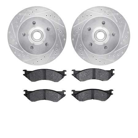 Dynamic Friction Company Front Brake Rotors Drilled and Slotted Silver with 5000 Advanced Brake Pads - 7502-54119