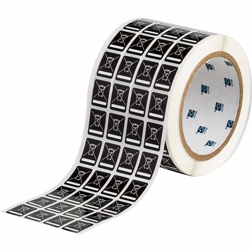 Brady WEEE-2-5-BK Satin Polyester Weee (Waste In Electrical And Electronic Equipment) Identification Labels , White On Black, 0.600" Width x 0.800" Height (15 Mm W x 20 Mm H) (5,000 Labels per Roll, 1 Roll per Package)