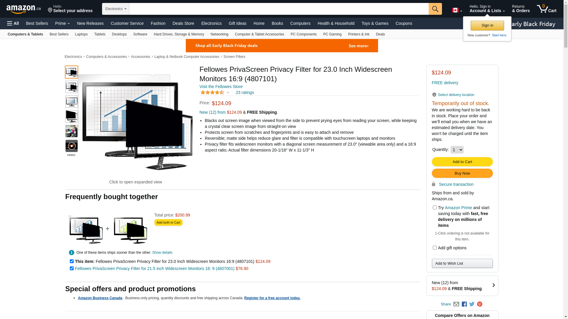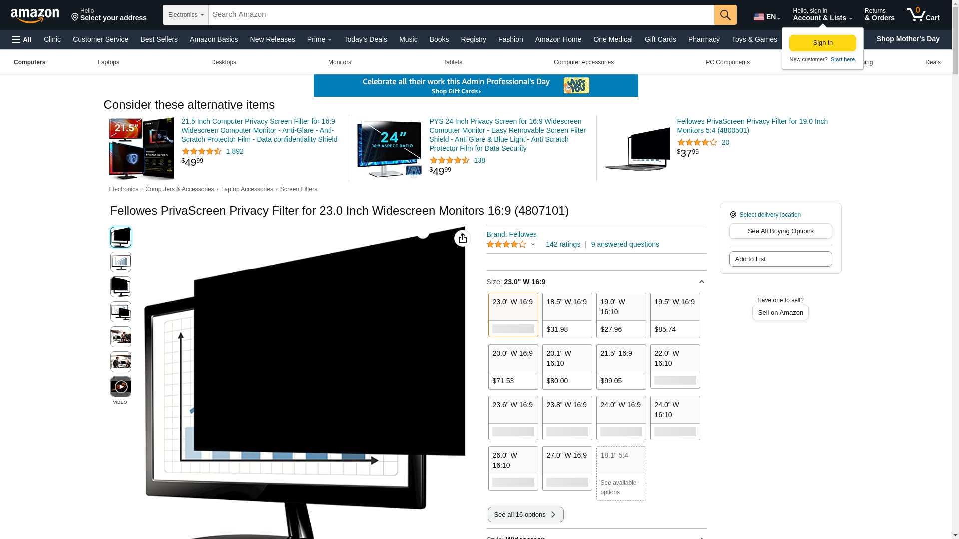 Fellowes PrivaScreen Blackout Privacy Filter for 23" Widescreen LCD