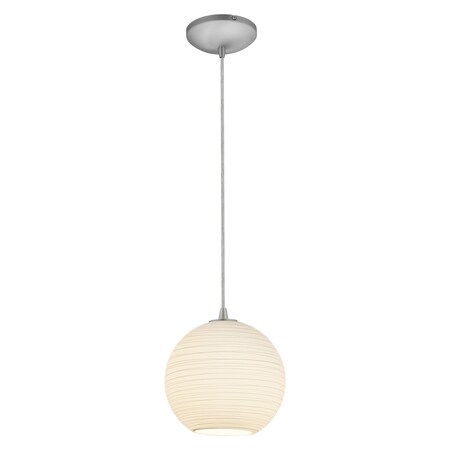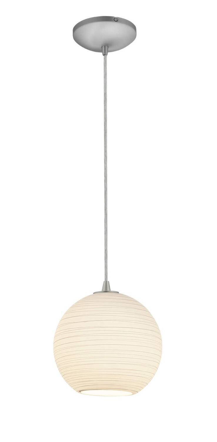 Japanese Lantern Glass Pendant - 1-Light 10"dia Pendant - Cord - Brushed Steel Finish - White Lined Glass Shade