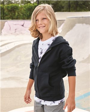 Independent Trading B32376703 Youth Midweight Full-Zip Hooded Sweatshirt, Red - Small