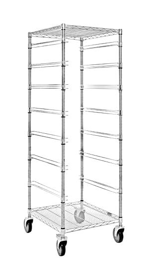 | Feature | Wire bin cart has swivel casters, two shelves, and seven pairs of adjustable slide channels, suitable for use with pull-out bins or trays (both sold separately) to transport, store, and dispense items |