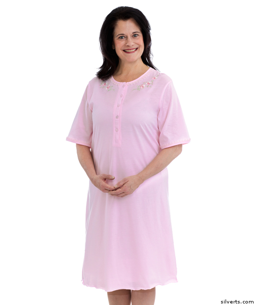 Silverts 161600102 Womens Cotton Short Sleeve Nightgown - Medium, Pink